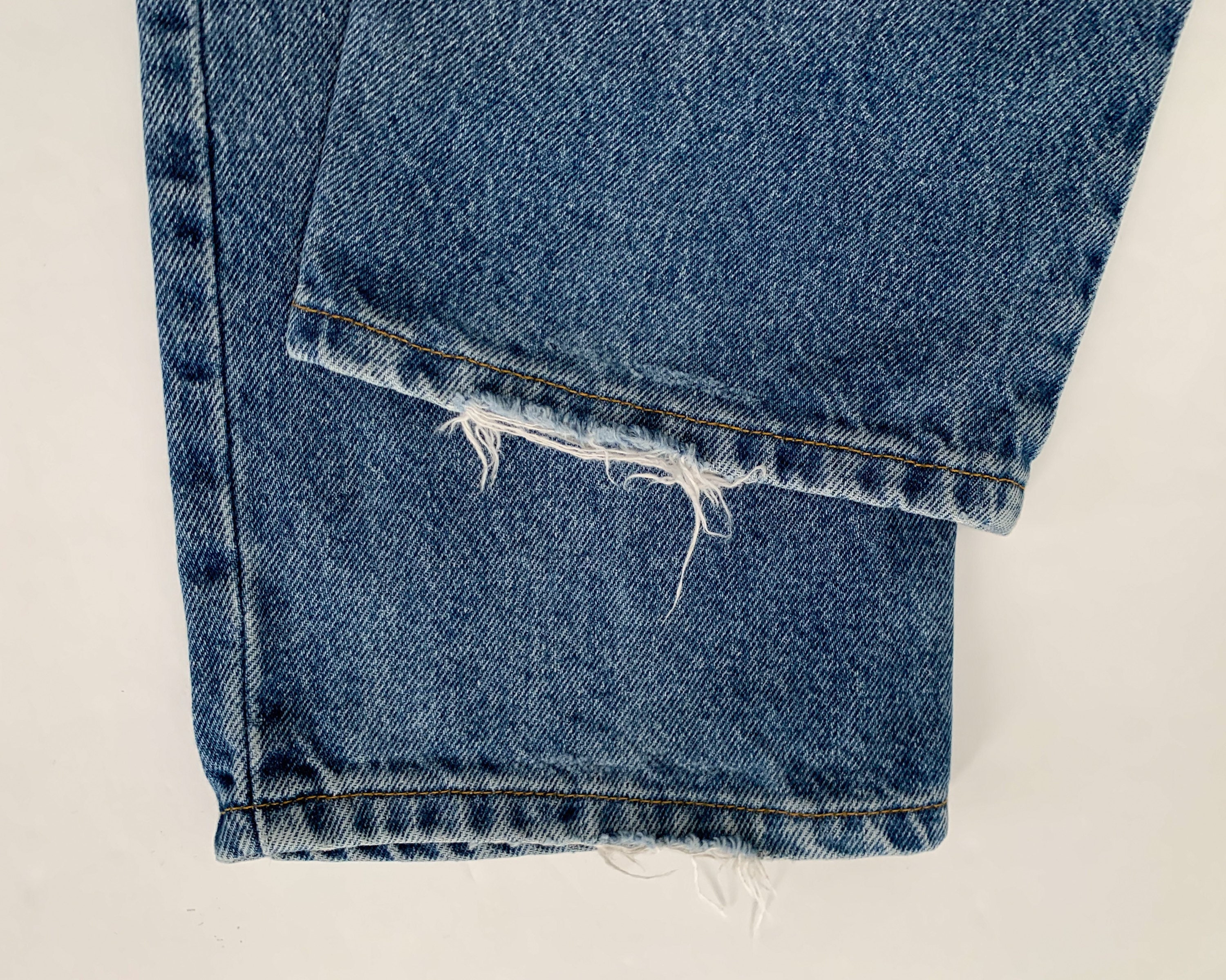 A great pair of late 1990s or early 2000s mom jeans by Lauren Jean Co by Ralph Lauren. These high rise jeans have the perfect faded blue wash, a nice high rise, and straight legs. Perfect to pair with all your sweaters this fall!