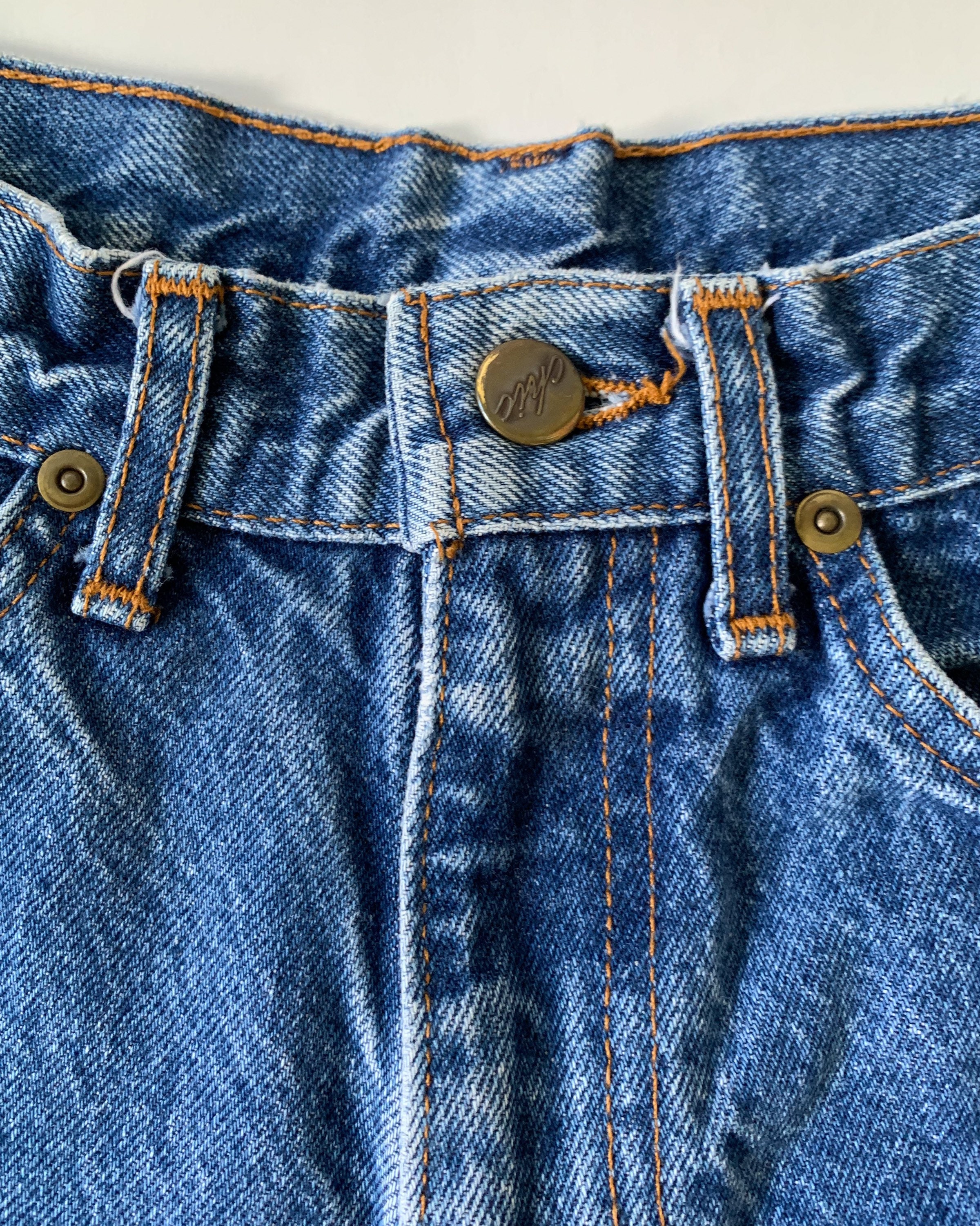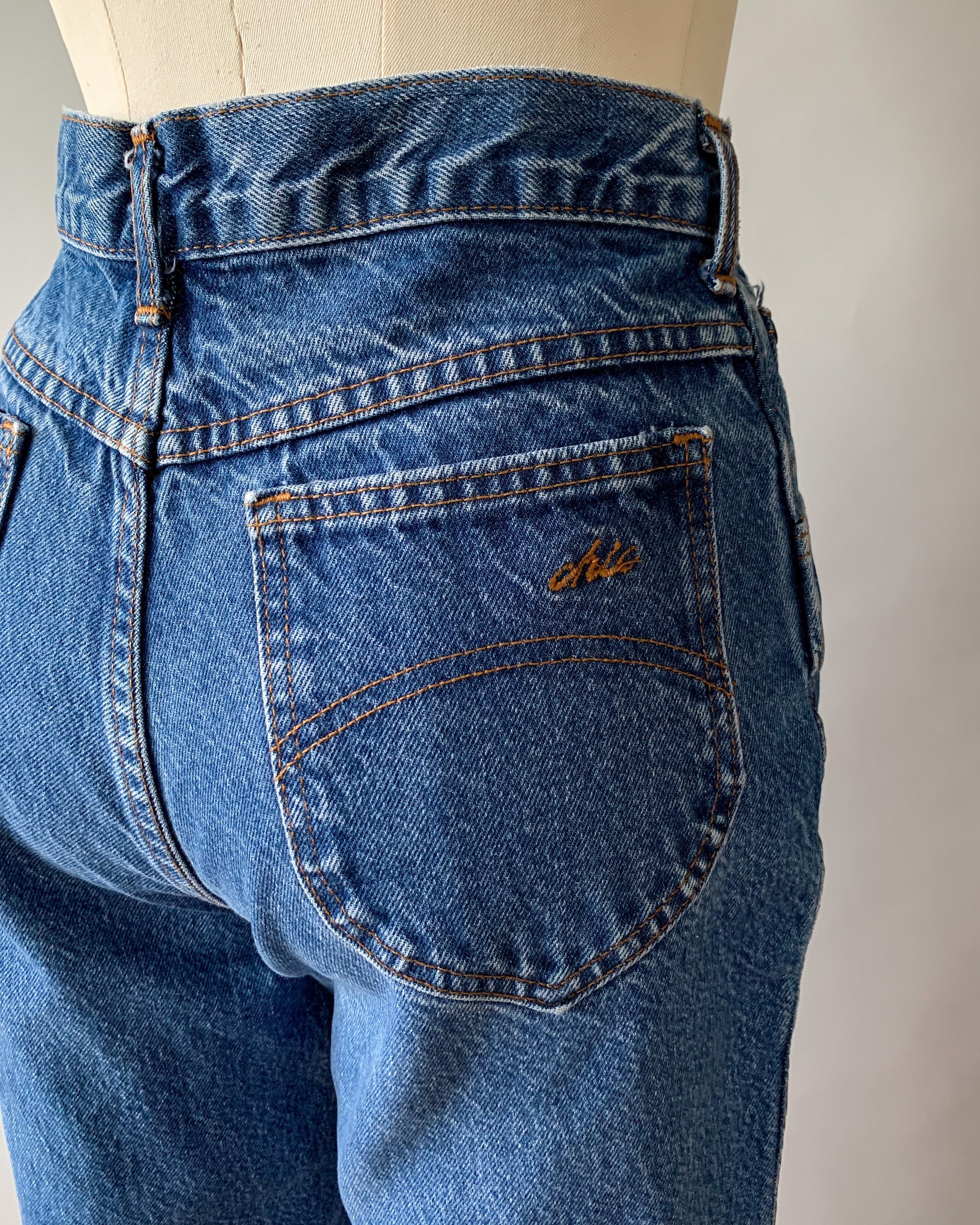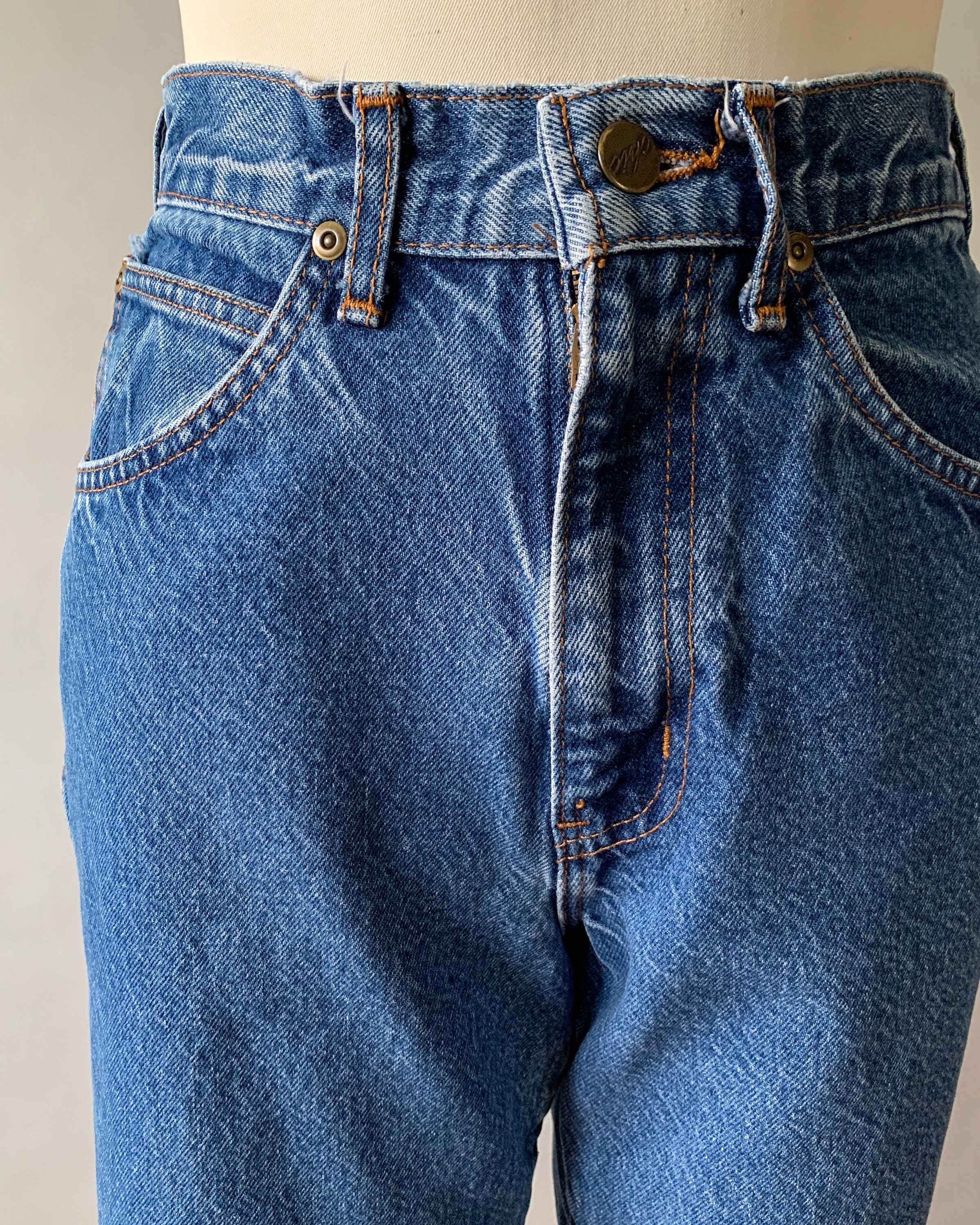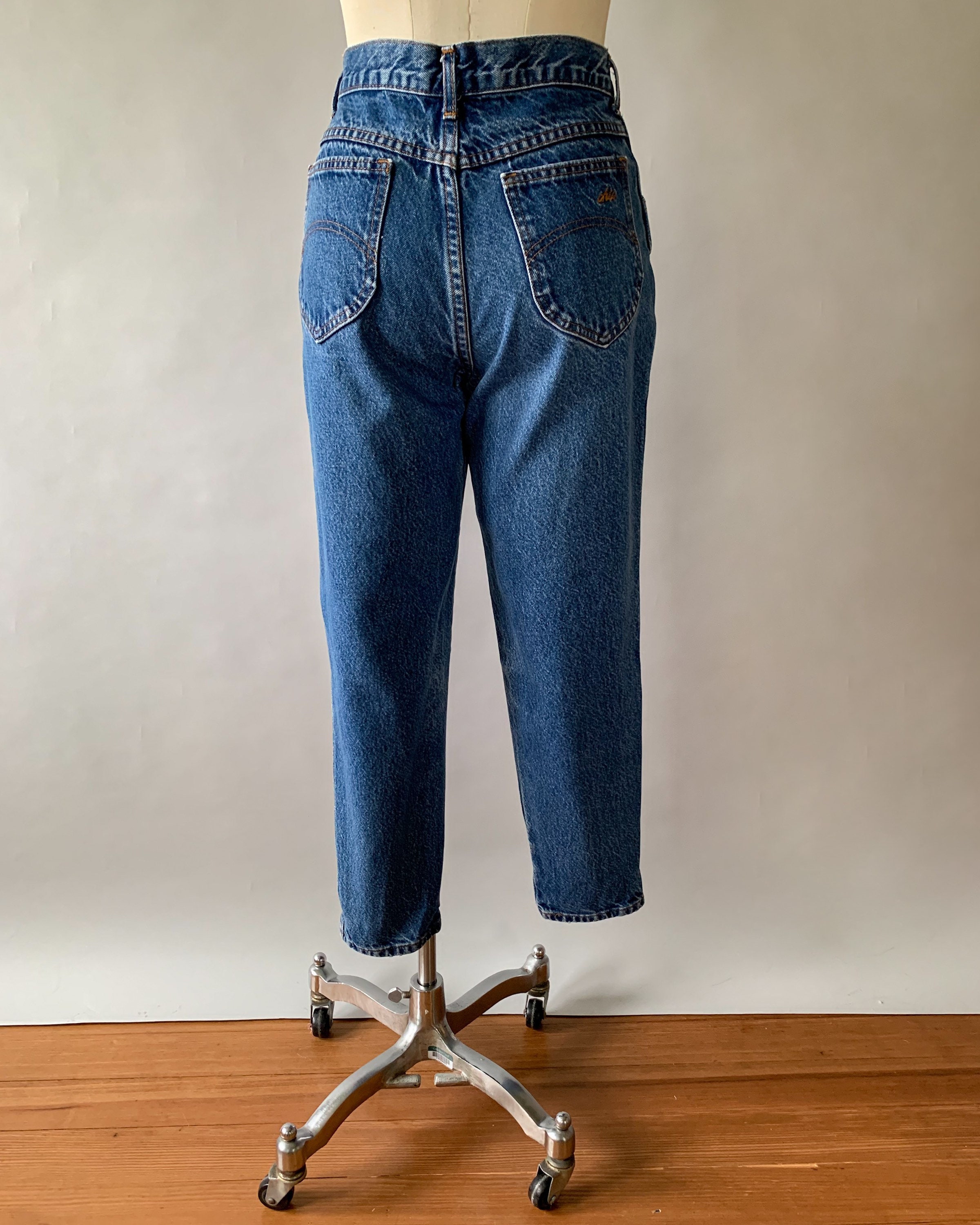 A great pair of 1980s faded medium wash mom jeans. These high rise jeans have a relaxed fit with tapered legs. Perfect to pair with crop tops this summer!
