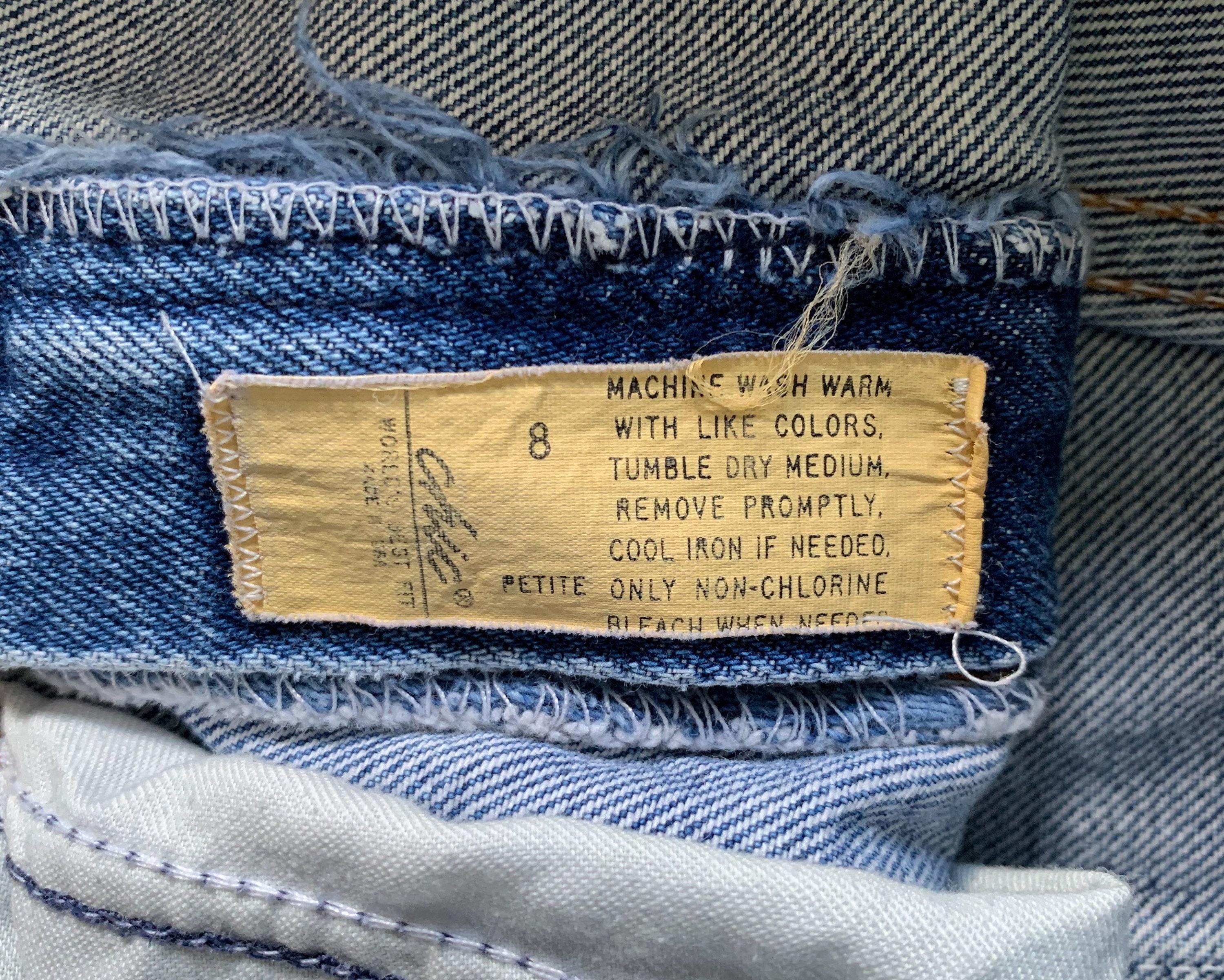 Size: tagged size 8 Petite and is estimated to fit a modern 0/25 to 2/26 (but please review measurements)