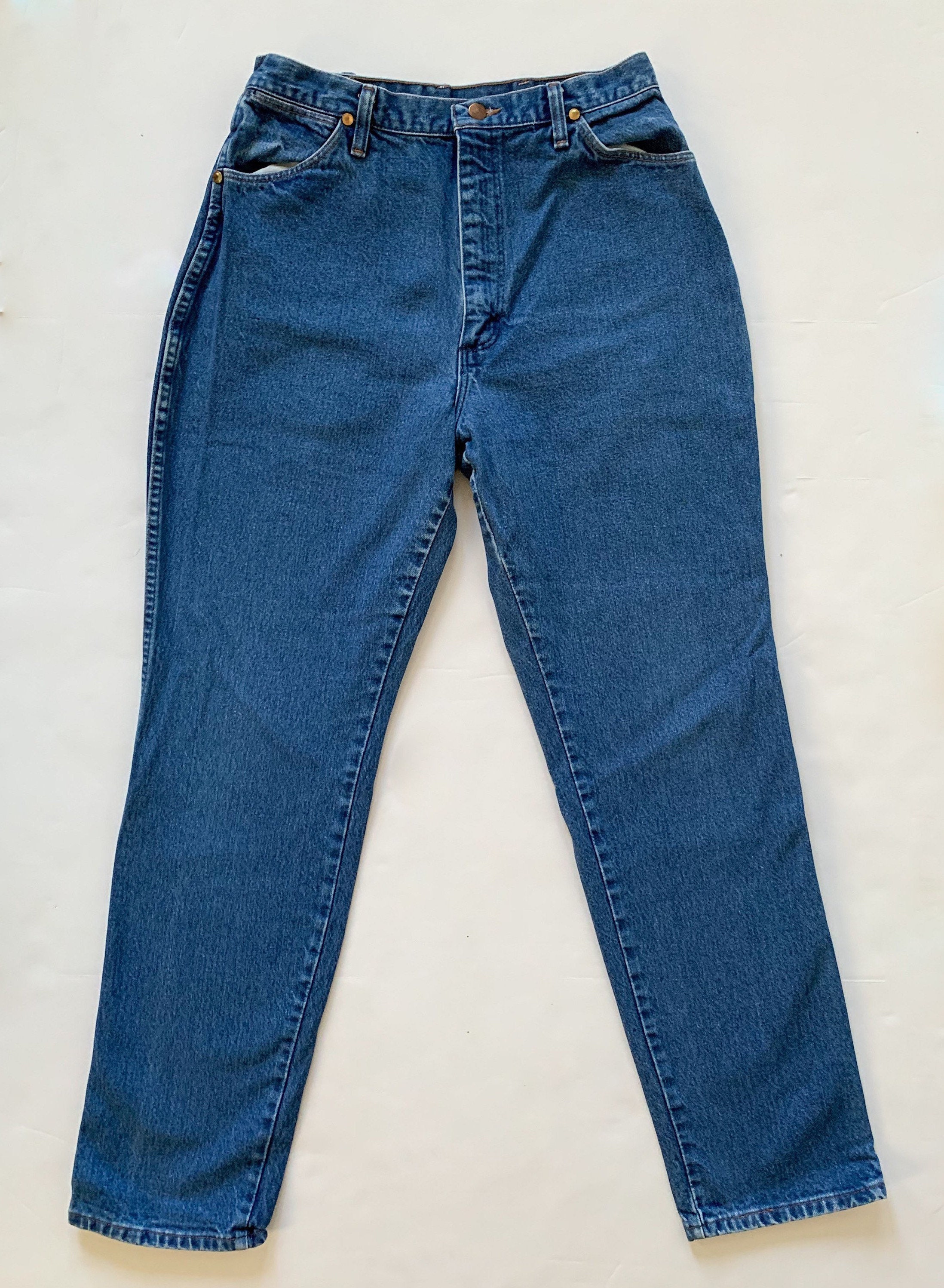 A great pair of 1980s mom jeans! These classic Wrangler’s have a great medium blue wash and slightly tapered legs. Too short/long? Cuff them, cut a raw hem, or make your perfect, custom cutoff shorts! Wear them in and make them your favorite, go-to jeans!