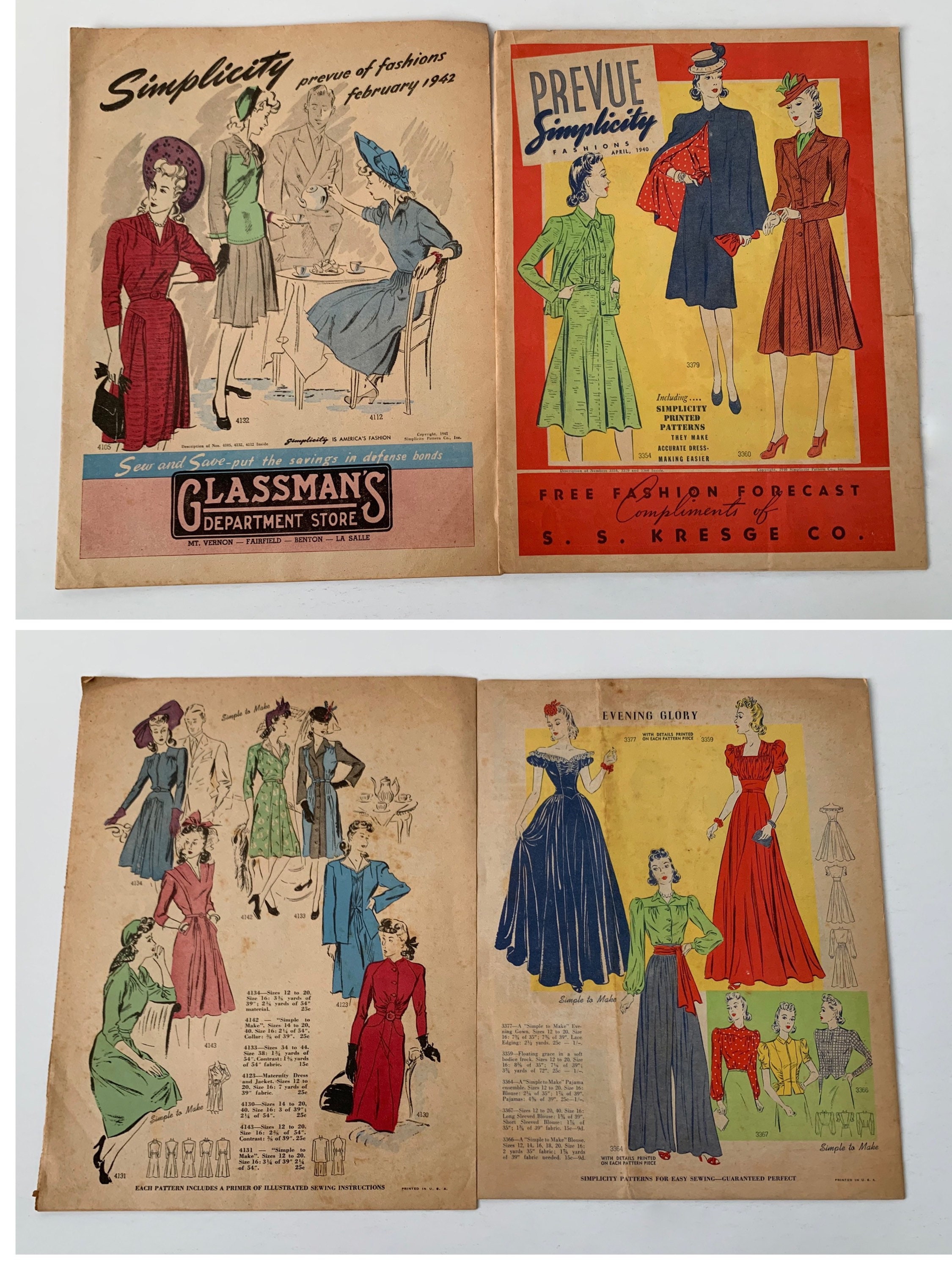 Two vintage Simplicity pattern booklets from February 1940 & April 1942! 8 & 12 pages of beautiful early 40s pattern illustrations and descriptions! These collectible pieces of fashion history would make the perfect gift for a seamstress, pattern collector, or vintage lover - they are full of 1940s style inspiration and also make a great resource!