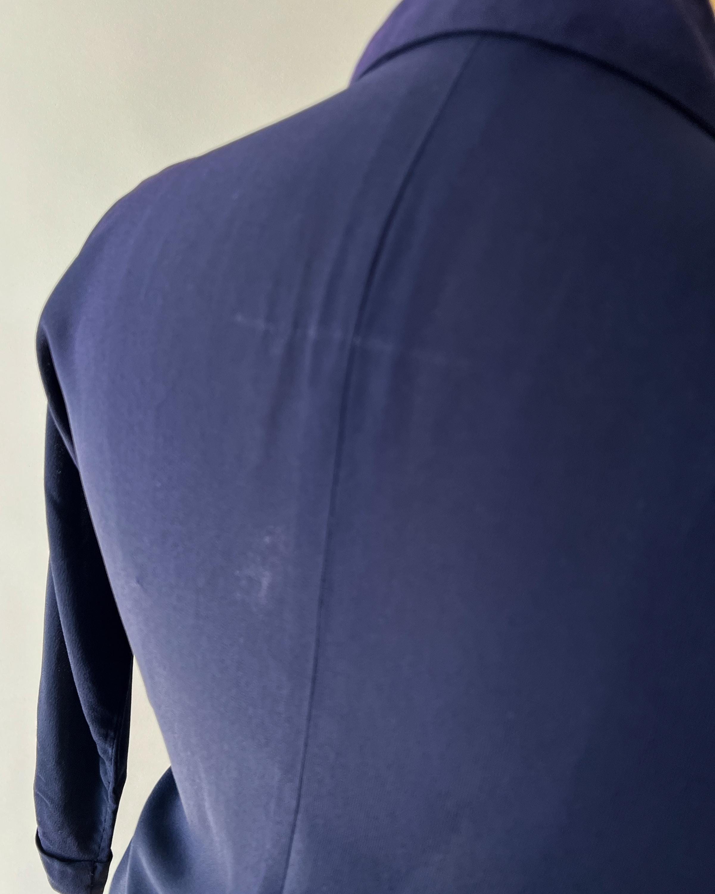 Condition: Good vintage condition! It has some fading / purplish discoloration at the collar / shoudkers / down the sleeves. Also a subtle whitish faded spot on the center back. Sold as-is. Hand washed and ready to wear!