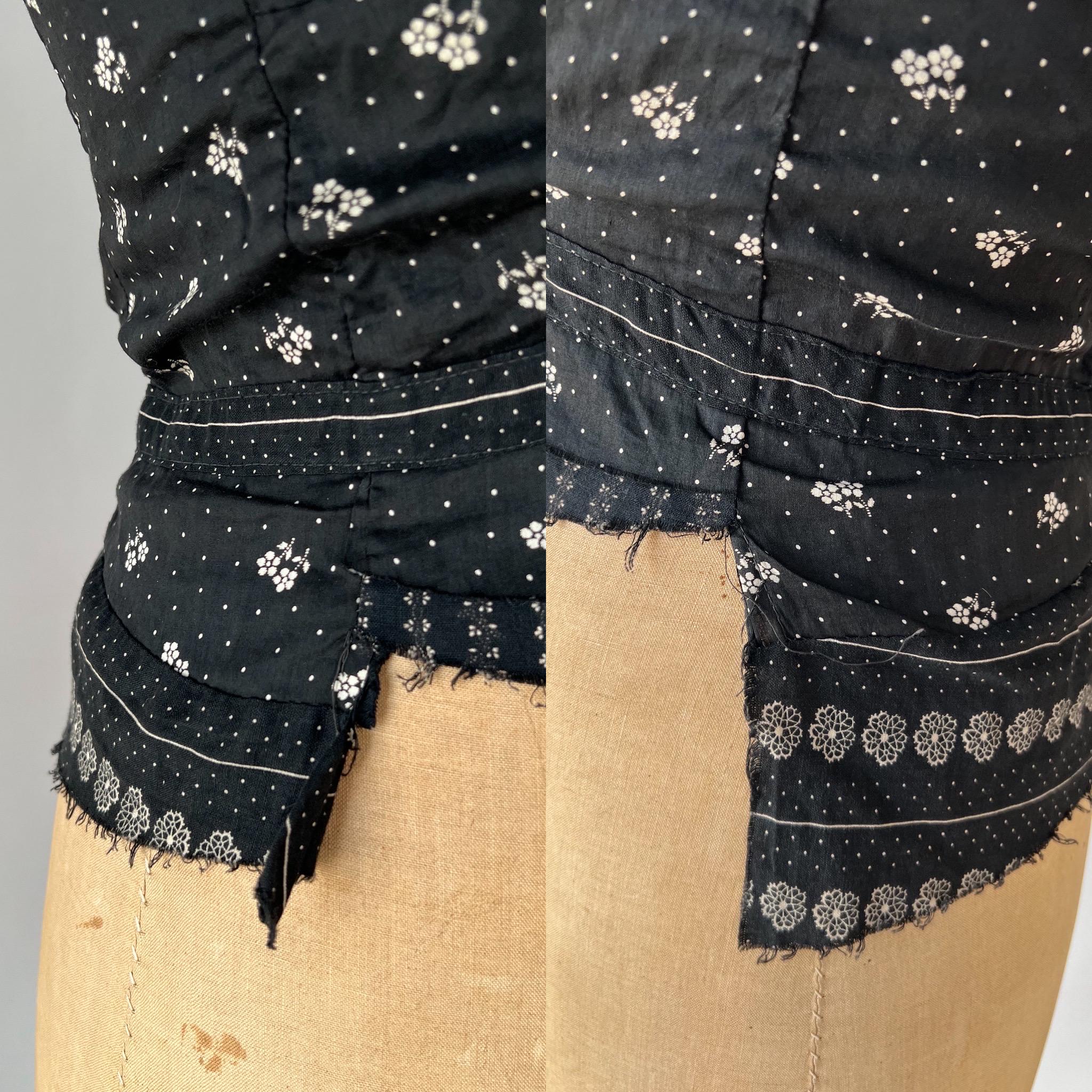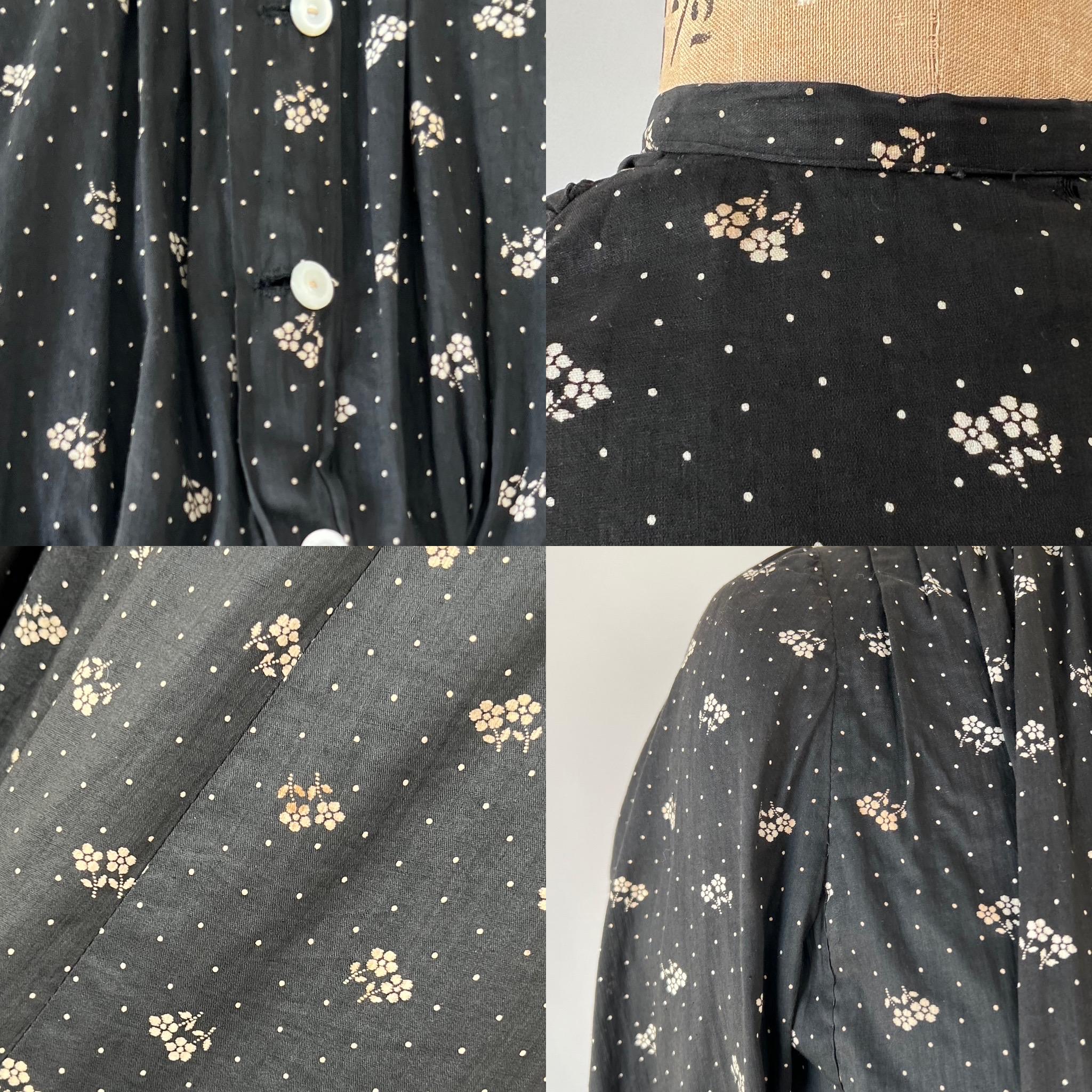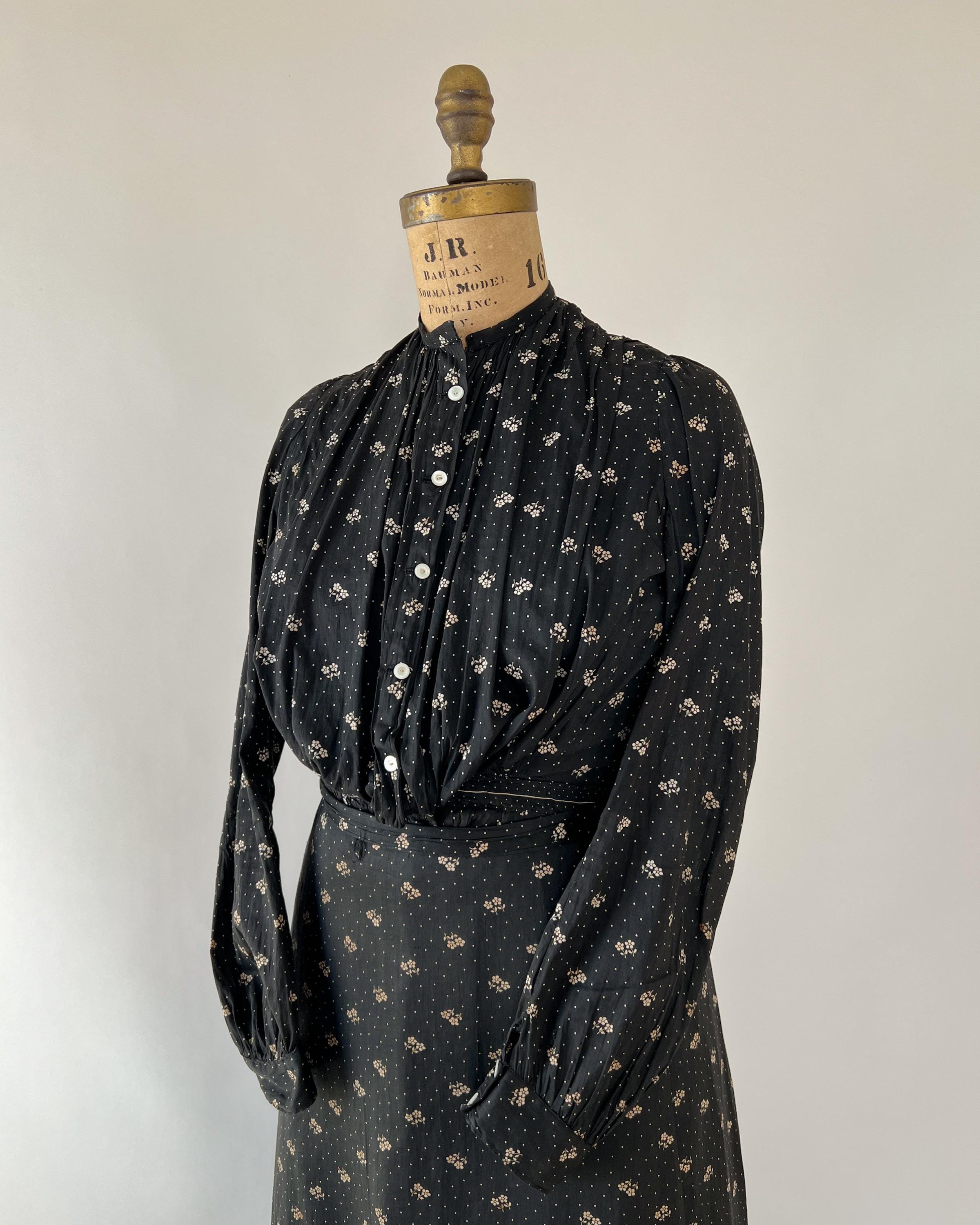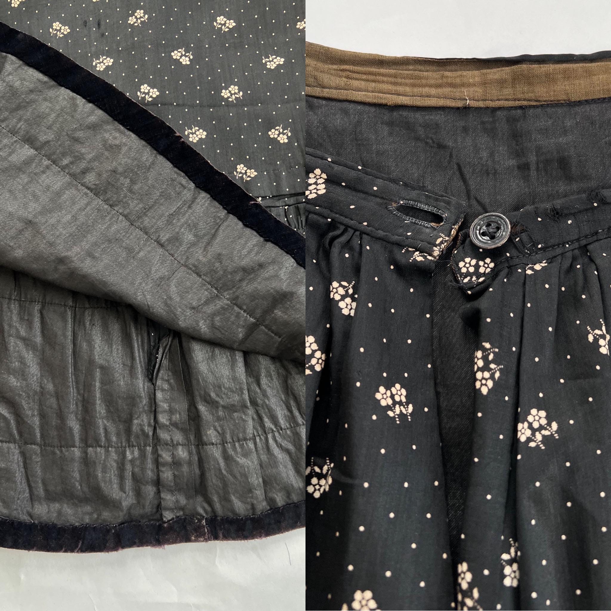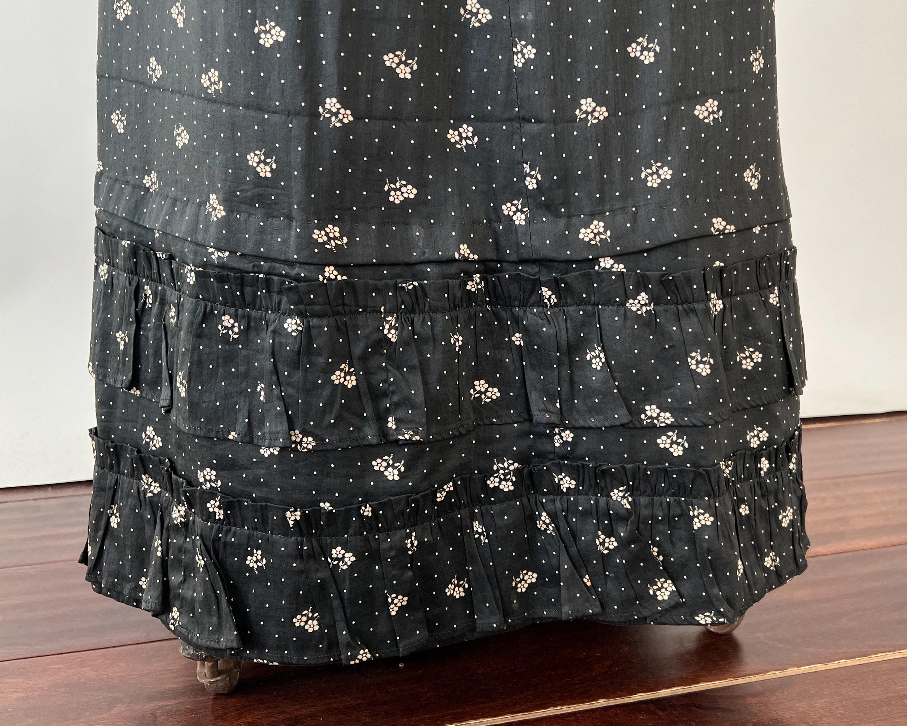 Antique Dress, Victorian Edwardian 1890s 1900s Black Calico Floral Bodice Skirt Set, Primitive Farm Pioneer Mourning, Medium, 29 30 Waist