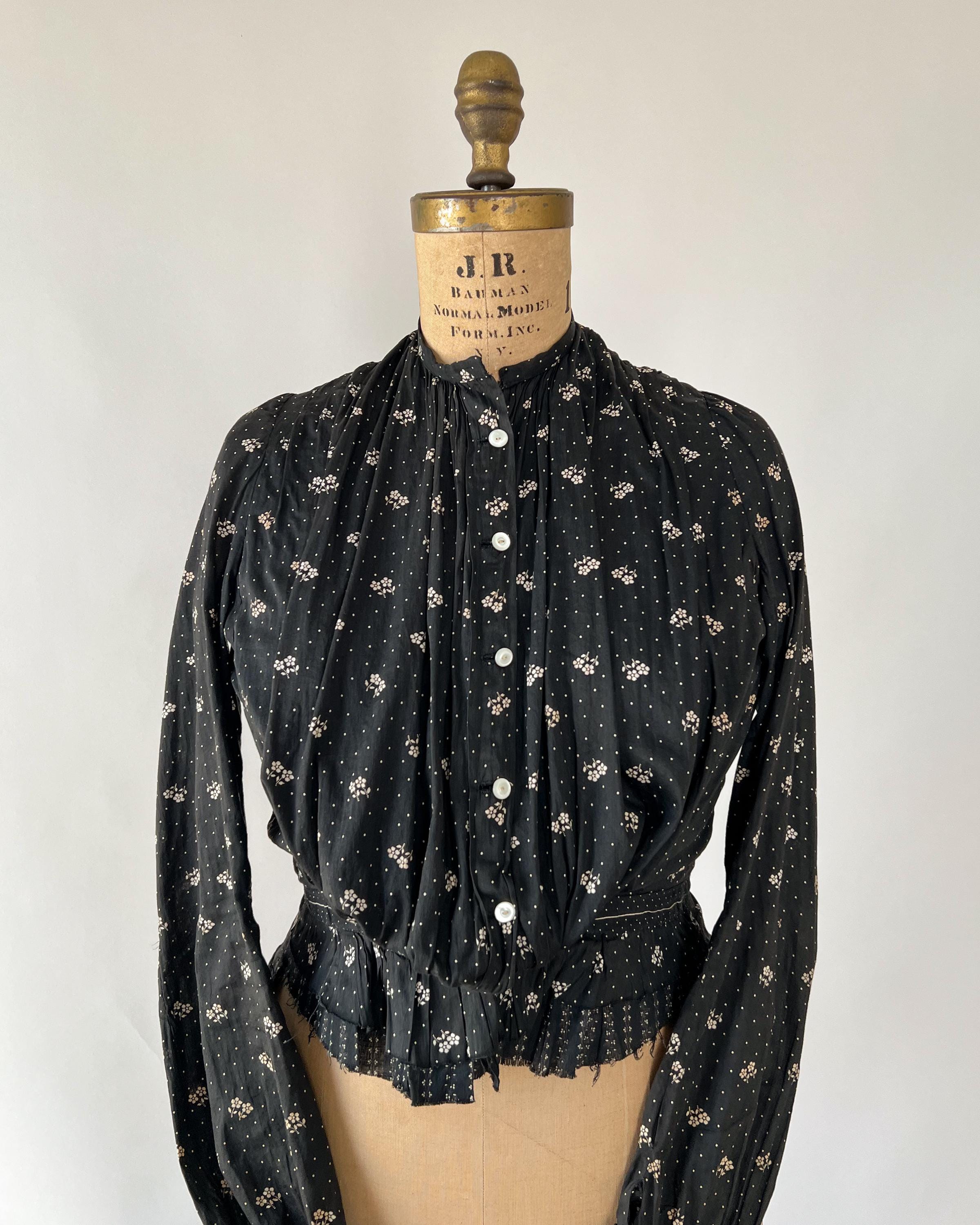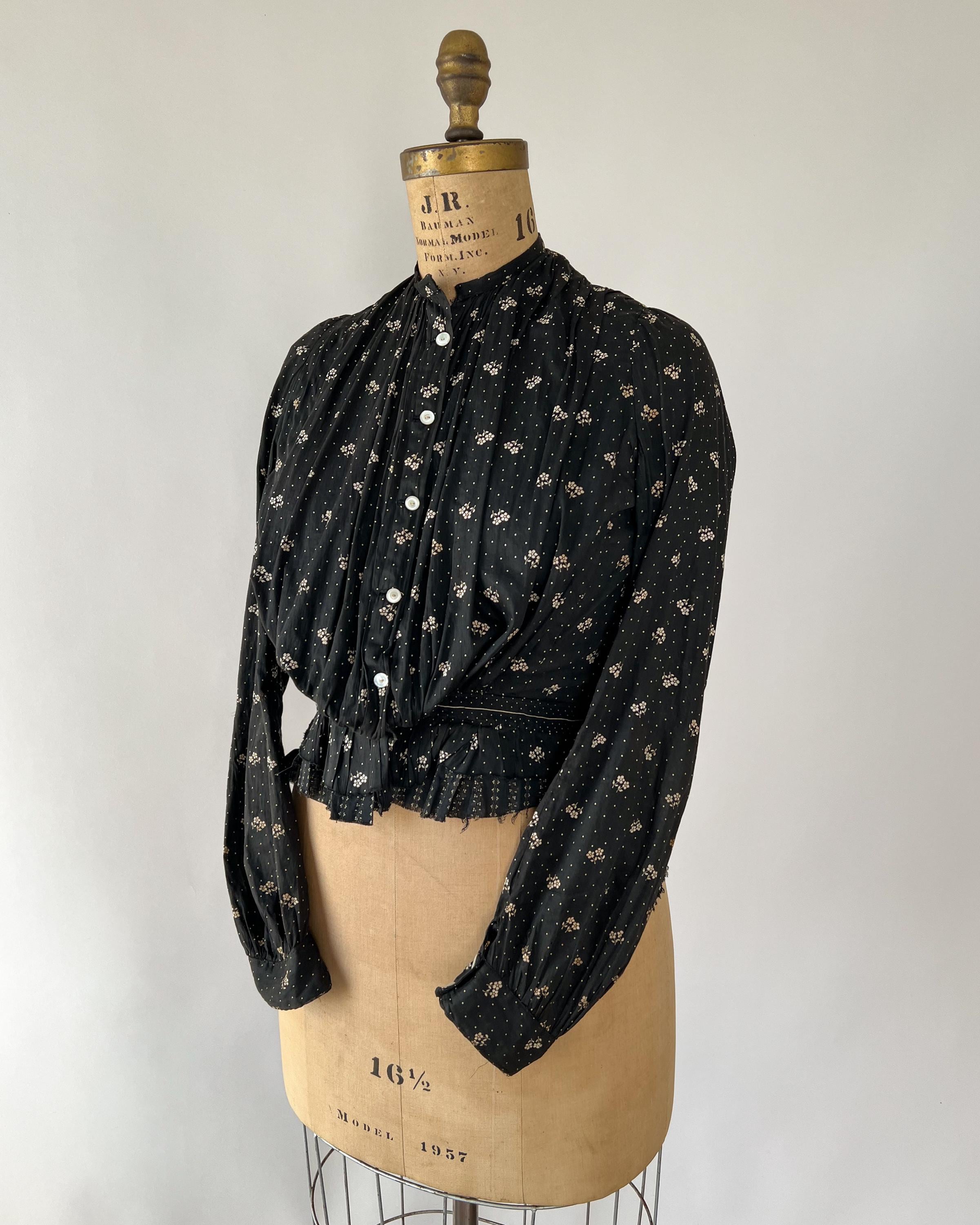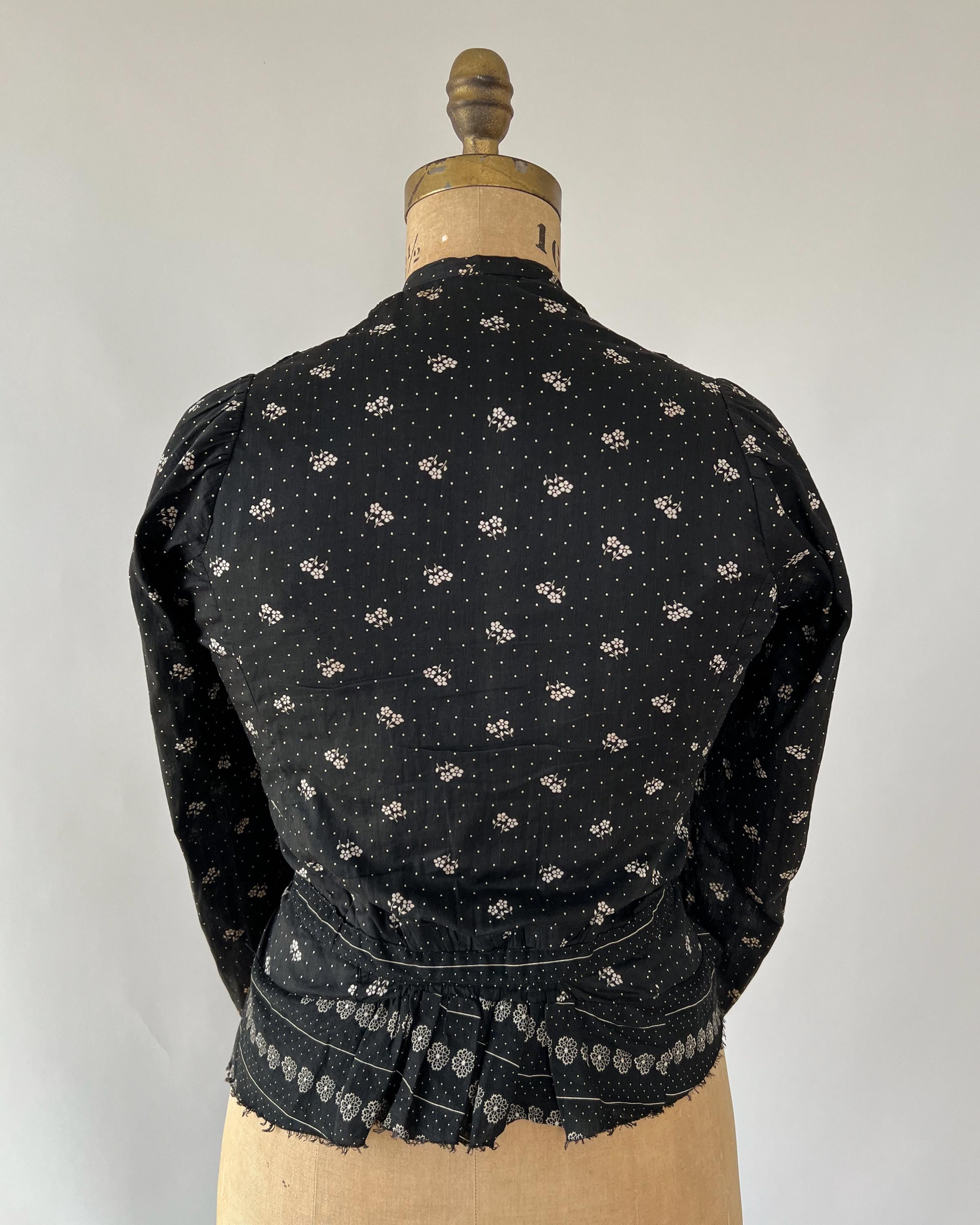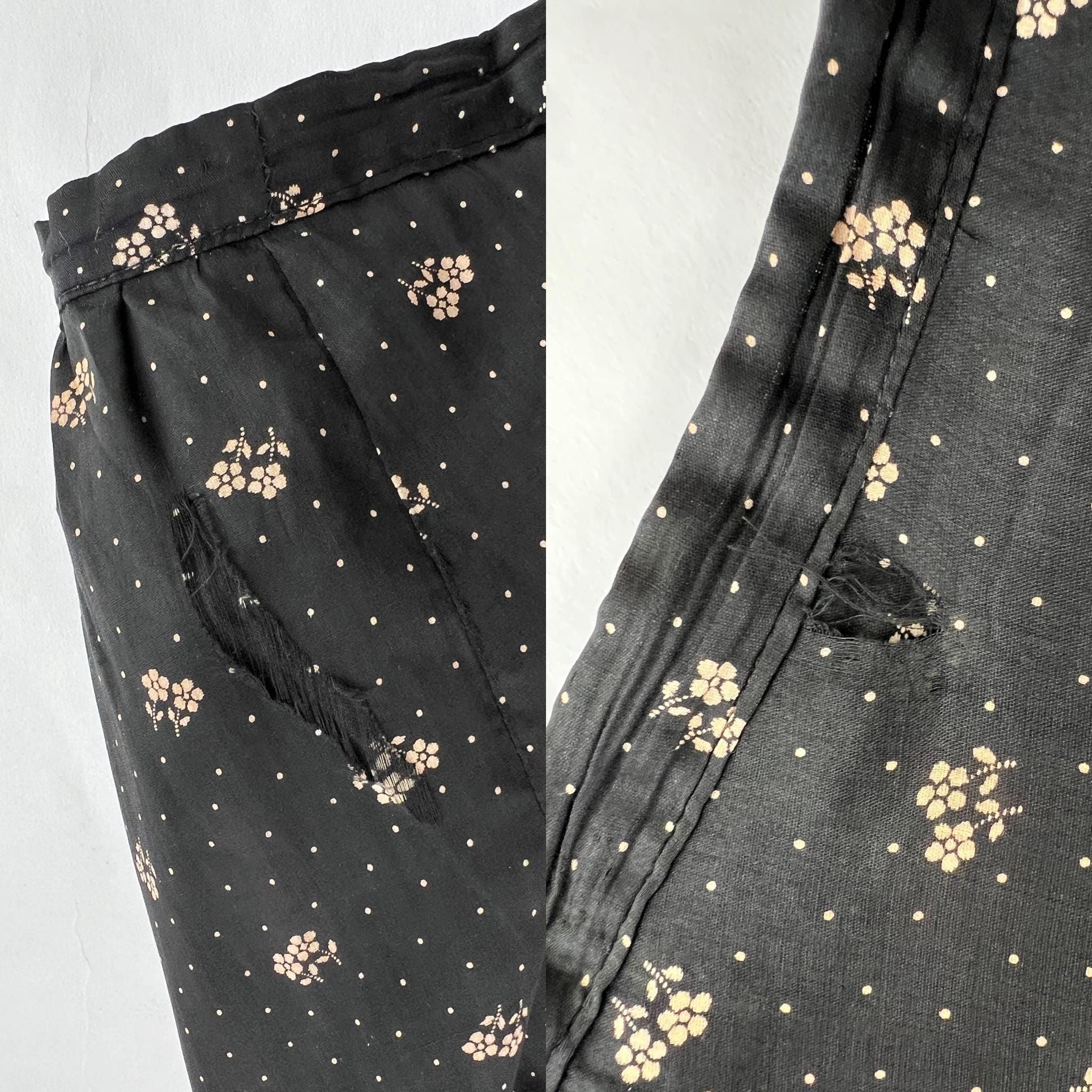 Antique Dress, Victorian Edwardian 1890s 1900s Black Calico Floral Bodice Skirt Set, Primitive Farm Pioneer Mourning, Medium, 29 30 Waist