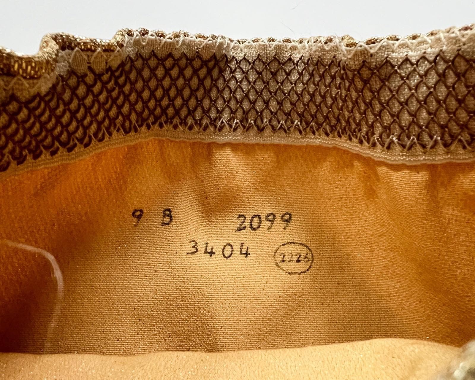 Amazing 1960s or early 70s gold lame stretchy knee high heeled go go style boots. They have elastic at the calves. So fun!!