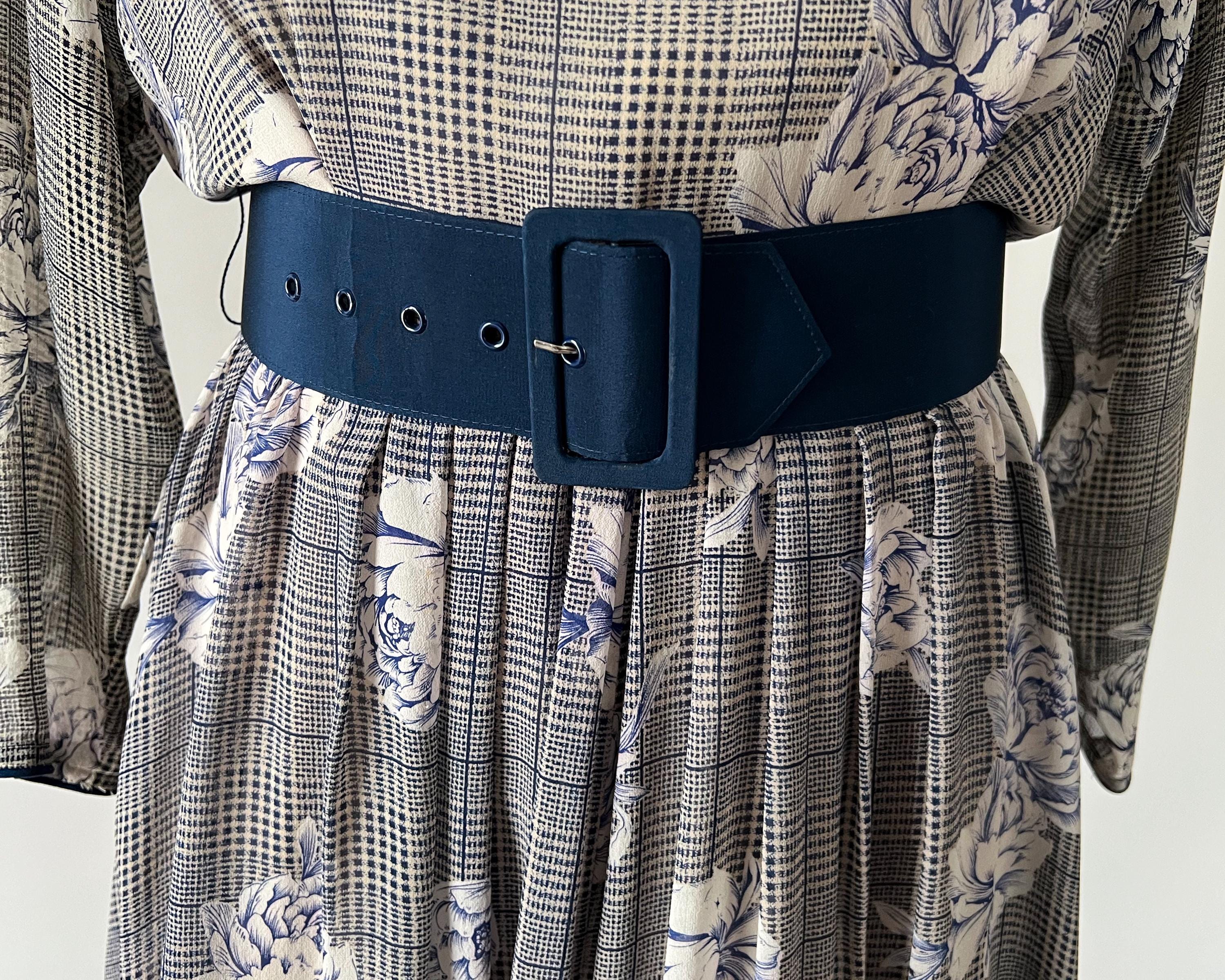 Shown belted to fit a size medium / large dress form that measures 39” - 30” - 40.5” (dress isn’t fully zipped).